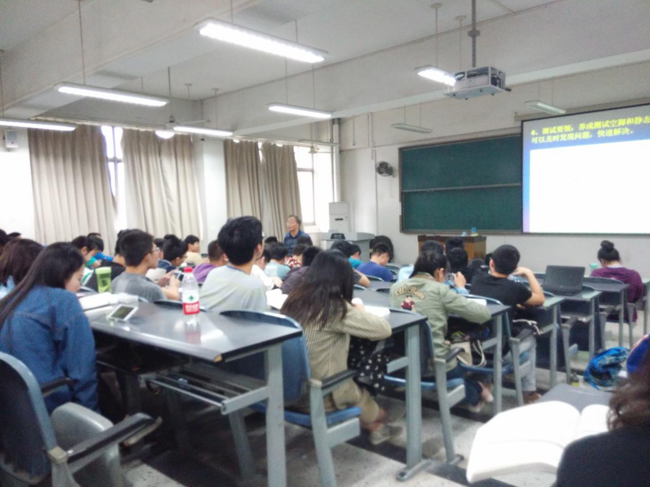 李老师对大学生科技创新实践与电子竞赛进行了简要介绍,生动阐释了创新和实践对于学生的重要性,并对运算放大器的特点、分类、调零以及故障原因和排除等方面的专业知识进行了详细讲解,同学们受益匪浅。